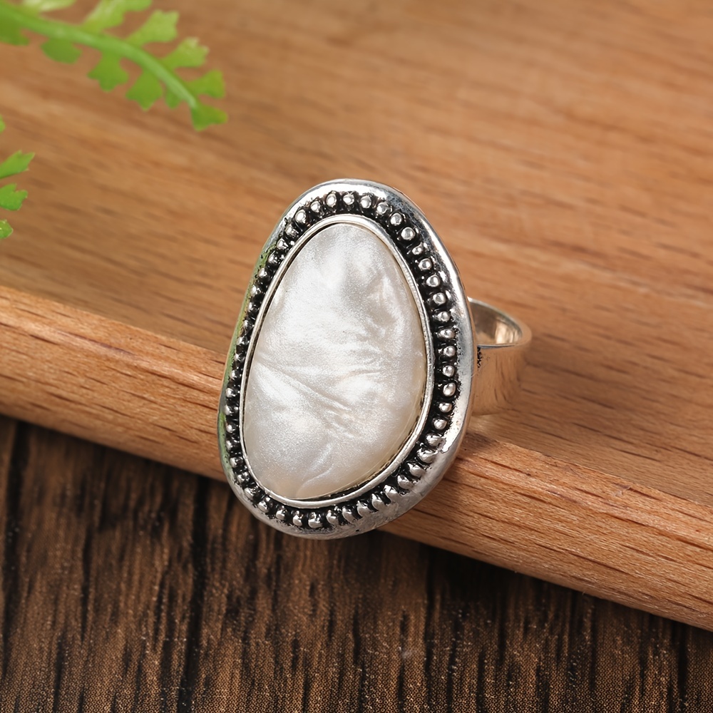 TEMU 1pc 빈티지 주석 합금 기하학적 인레이 레진 조절 가능한 반지 - 여성용 일상, 파티, 저녁용 보석, 선물 아이템, 실버 플레이트, 파티 반지|빈티지 인스피어드 반지|조절 가능한 반지