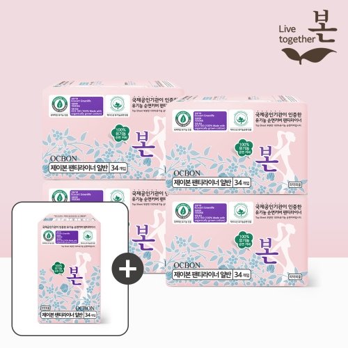 유기농본 생리대 팬티라이너 일반 34P 4팩+1팩