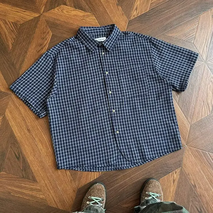여름 반팔 와이드핏 셔츠 남성 학생 레트로 체크 셔츠 커플 상의 클린핏 트렌디 루즈핏 셔츠 청소년 인기 여름 얇은 모델