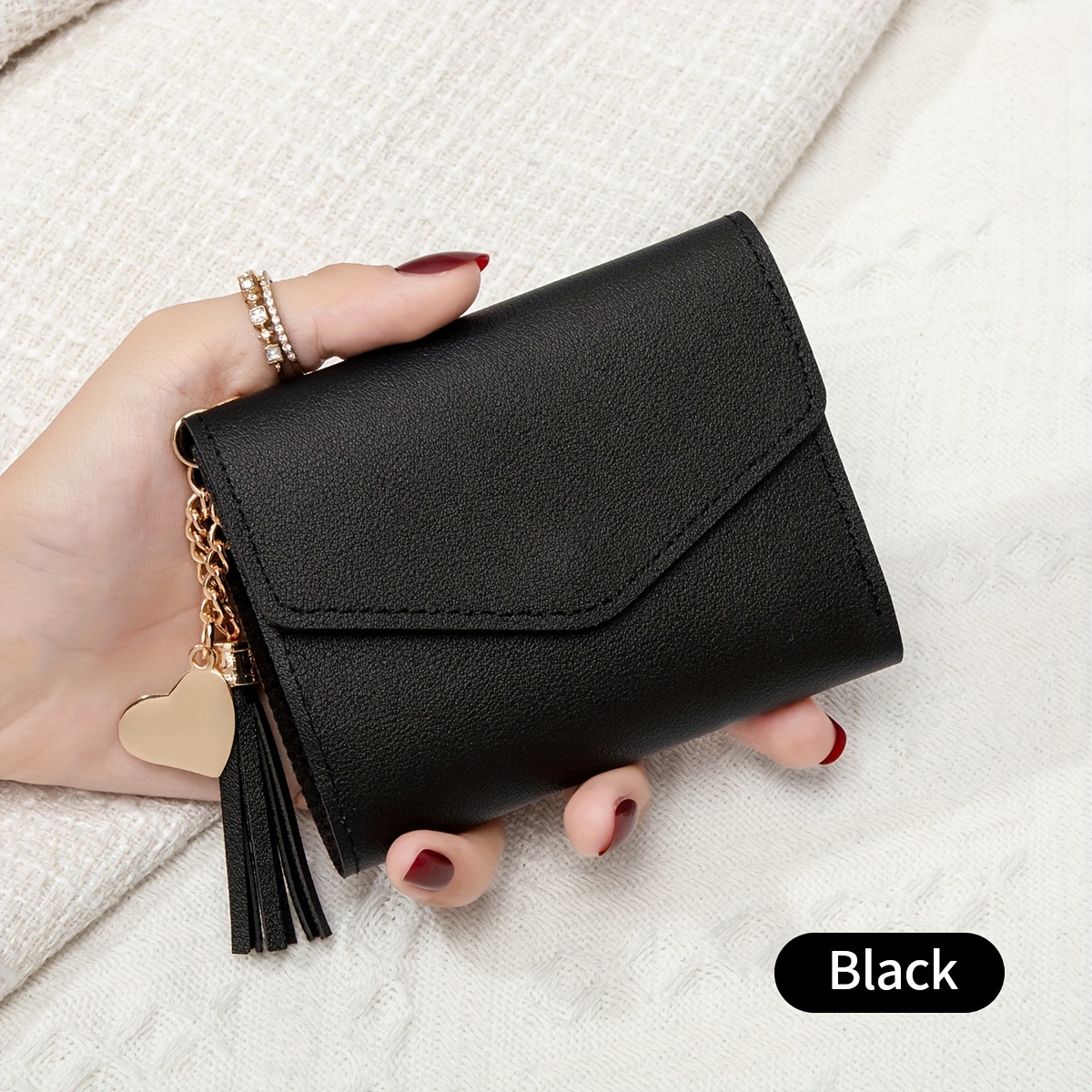 TEMU 1pc 여성 미니 지갑 - 컴팩트 경량 트리폴드 디자인, 스냅 클로저, 다중 카드 슬롯 및 턱스charm - 블랙, 핑크, 그린 색상에 필수적인 보관 포장 - 8개의 카드와 현금 부피를 보유하고, 귀여운 스타일, 지갑 카드 홀더 조합