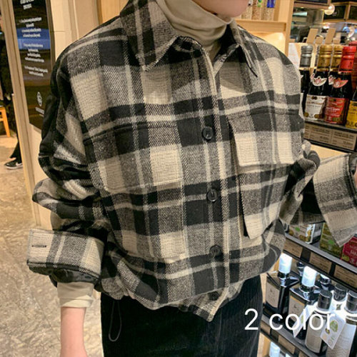 [블랙퀸]코코 트위드 체크 블루종 숏자켓 blk002253