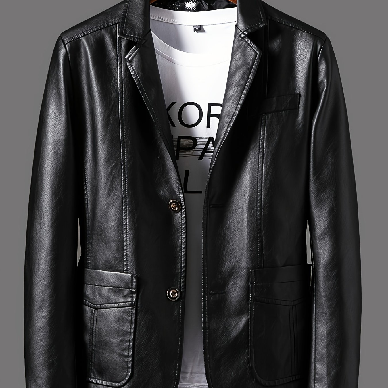 TEMU 남성용 슬림핏 캐주얼 패션 - 마룬 PU 가죽 재킷 포켓 포함, 단추 앞면, 긴 소매, 캐주얼 의상에 완벽한 폴리에스터 섬유 코트