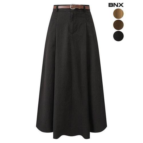 [BNX]여성 코튼 밴딩 플레어 벨트 스커트