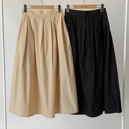 에이치다 / 엣지 코튼 핀턱 플레어 A라인 롱스커트 4color