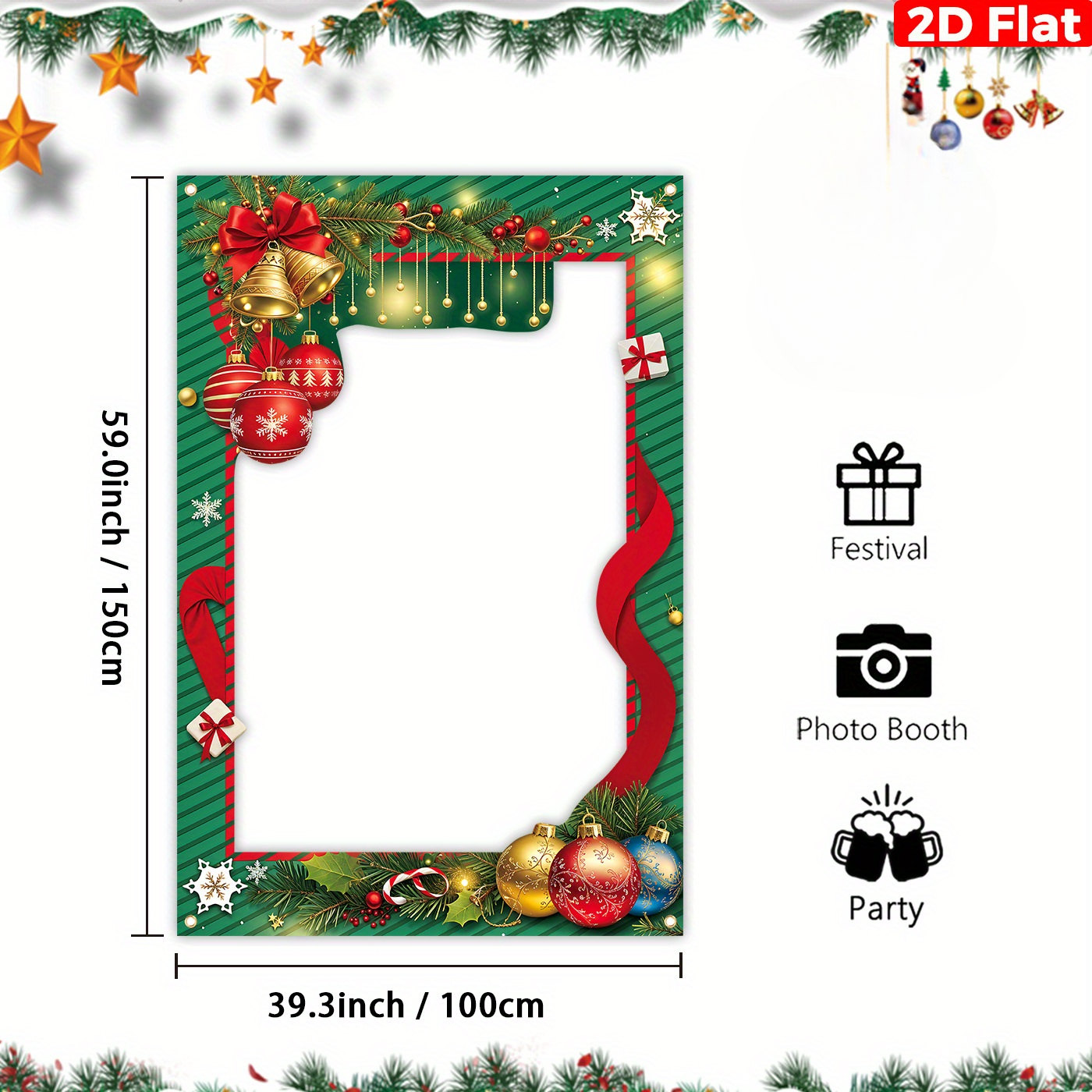 TEMU 2D 플랫, 1개 크리스마스 테마 홀로우 사진 프레임 (녹색 화환과 종 패턴) - 100*150cm, 겨울 파티 사진 소품, 크리스마스 장식용 2D 배경천, 축제 장식,계절 디스플레이,가벼운 소재,고품질 인쇄,크리스마스 배경,이벤트 플래너,휴일 장식가