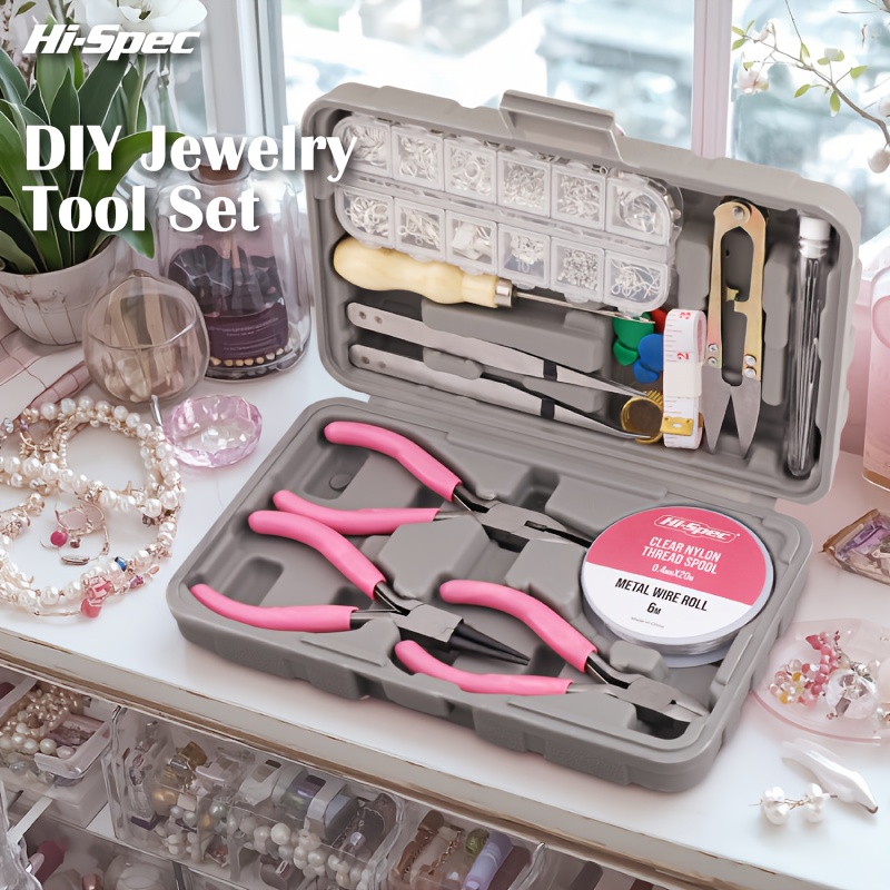 TEMU 여성용 주얼리 제작 키트 (뾰족한 코 플라이어, 스레드, 600개 소형 부품, 가위 등 일상적인 제작 도구 포함). 팔찌, 반지, 귀걸이, 목걸이 제작에 사용 가능. 편리하고 빠르게 제작할 수 있도록 보관 상자가 포함된 주얼리 제작 키트|은목걸이