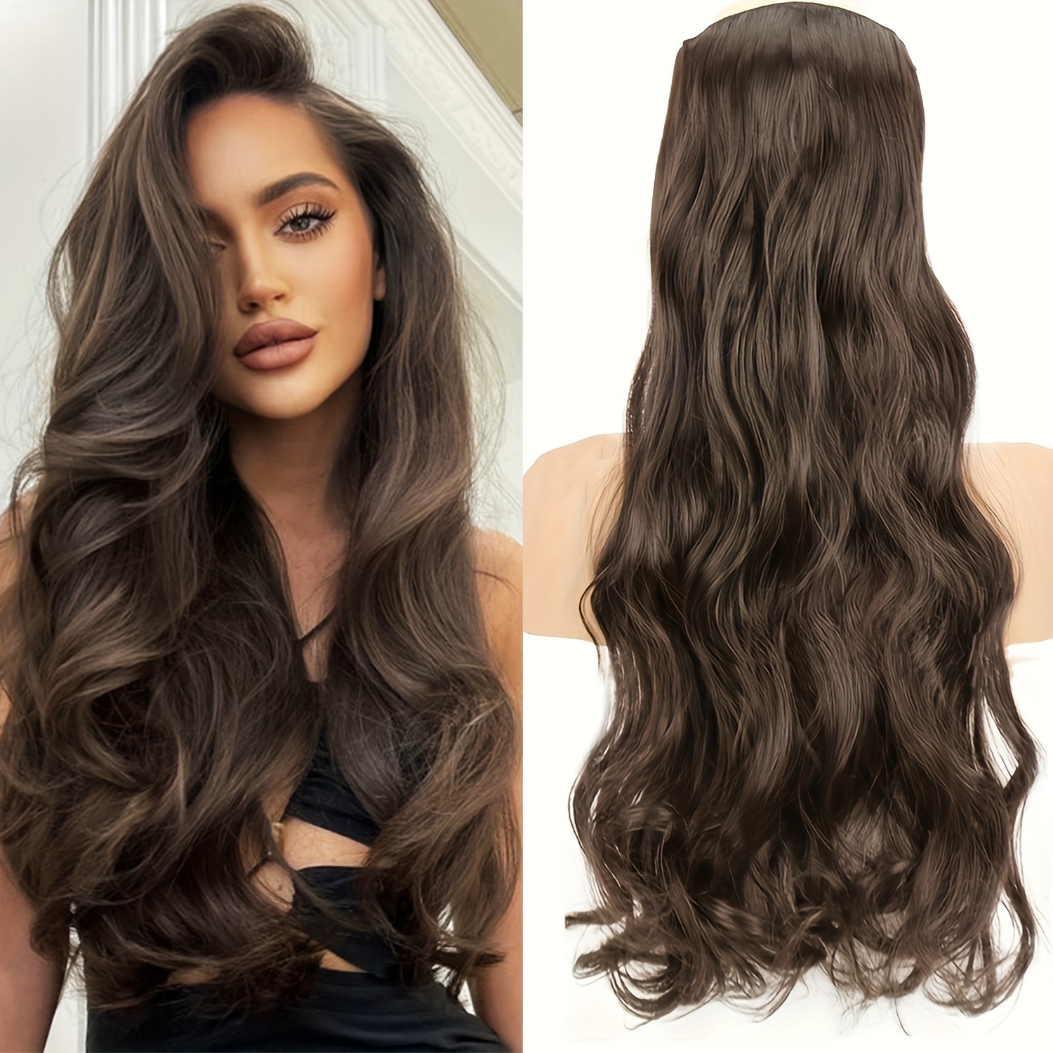 TEMU 롱 웨이비 5클립 인헤어 익스텐션 합성섬유 헤어피스 22-32인치 여성용 데일리 헤어 액세서리 할로윈