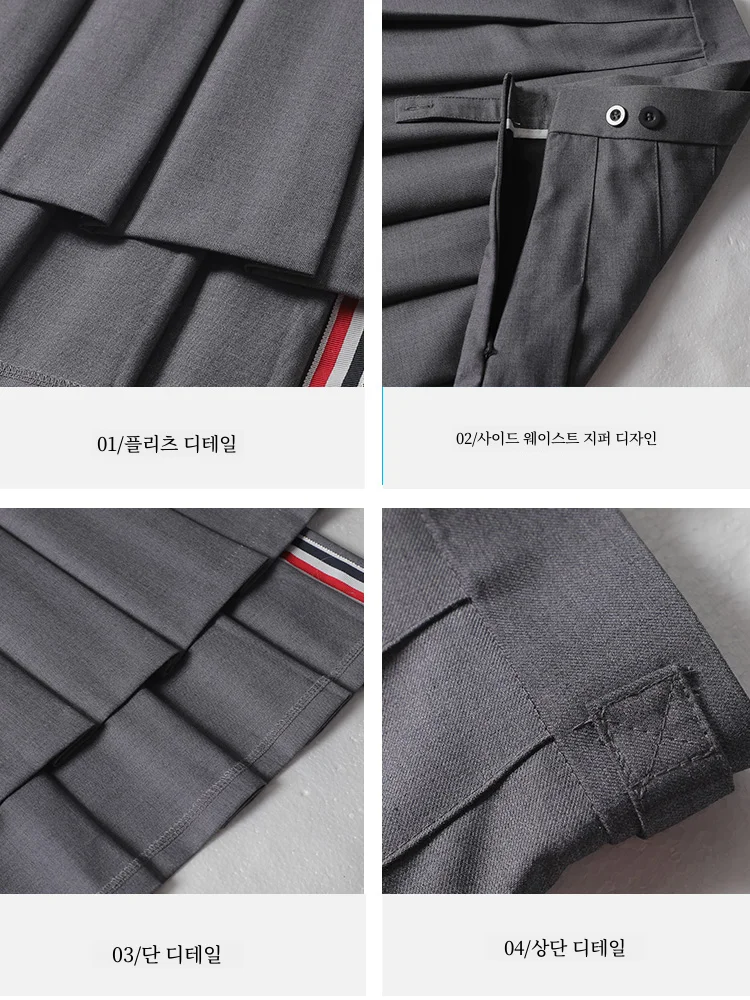 TEMU 하이-로우 플리츠 스커트, 리본 디테일, 폴리에스터 블렌드, 다재다능한 올 시즌 짜임 스커트