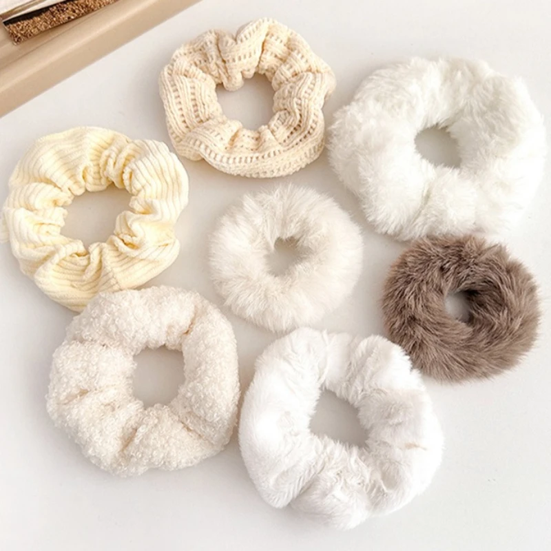 1/7개/세트 플러시 헤어 타이 인기 있는 새로운 다용도 플러피 헤어 스크런치 탄력 있는 헤어 밴드 여성 소녀용 고무 밴드 헤어