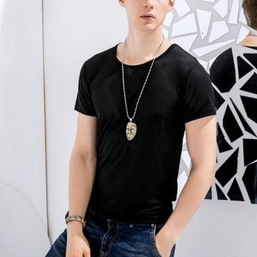 [다잇템][다잇템] 남자 아이스 반소매 숄더핏 SS U넥 실크 쿨링 티셔츠_13047950_588872