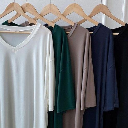 [엄지척]가벼운 여름 원사 시원한 쿨 니트소재 브이넥 반팔 티_19677880_667501