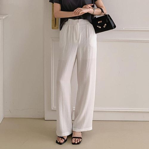 [옷자락]여자 오피스룩 구김적고 린넨 쿨 핀턱 와이드 바지_3
