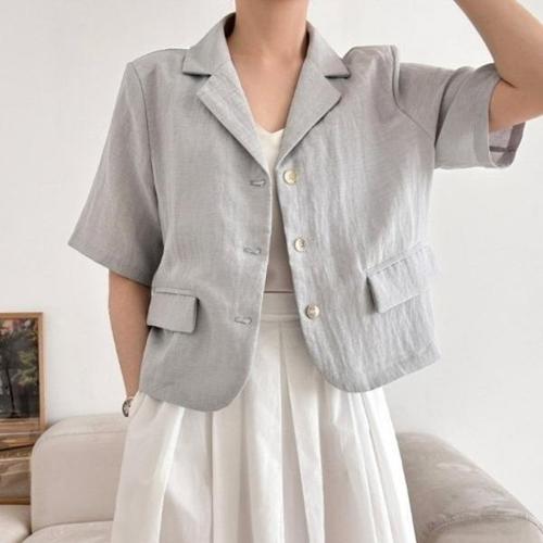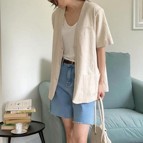 [다잇템][다잇템] 여자 캐쥬얼 반소매 마원단 V넥 카라없는 쿨 SS 자켓_16776059_588872