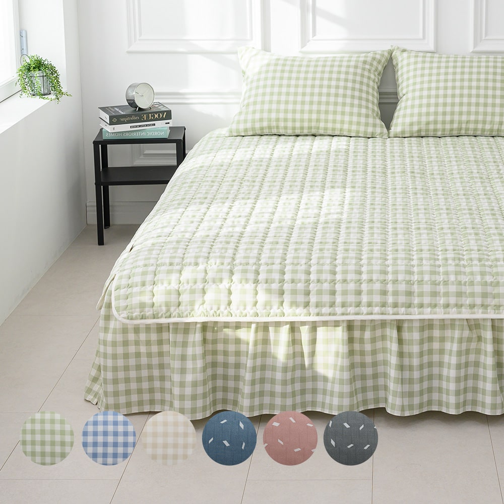 스몰체크 시어서커 여름 홑이불+침대패드+베개커버 세트 퀸 Q
