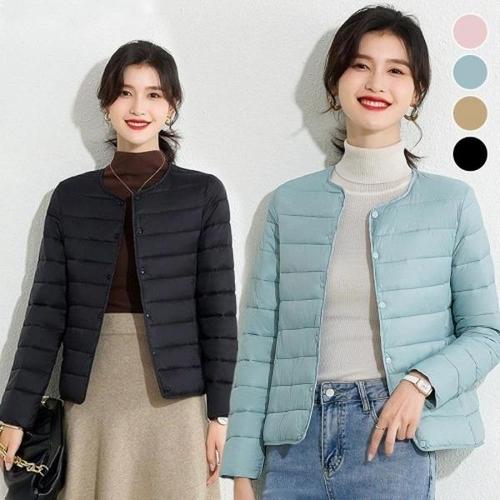 [다잇템][다잇템] 여자 경량 FW 민무늬 퀼팅 패딩 카라없는 롱슬리브 자켓_22964579_588872
