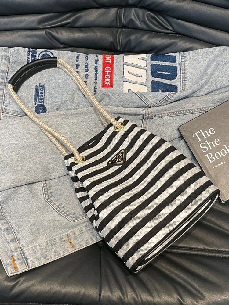 트렌디한 통근용 캔버스 숄더백 언더암 크로스바디백 블랙 화이트 스트라이프 다용도 싱글 스트랩 백 남녀공용