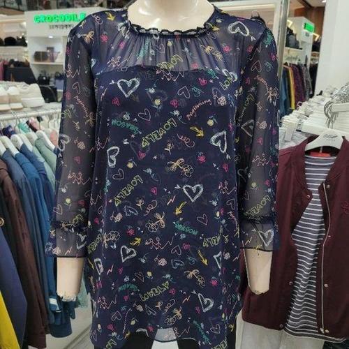 크로커다일 레이디소매 장식 프린트 블라우스 CLCFBL101 413565
