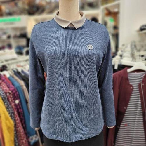 크로커다일레이디 아크릴 레이온 혼방 소재로 부드러운 감촉의 카라넥 배색 포인트 긴소매 티셔츠