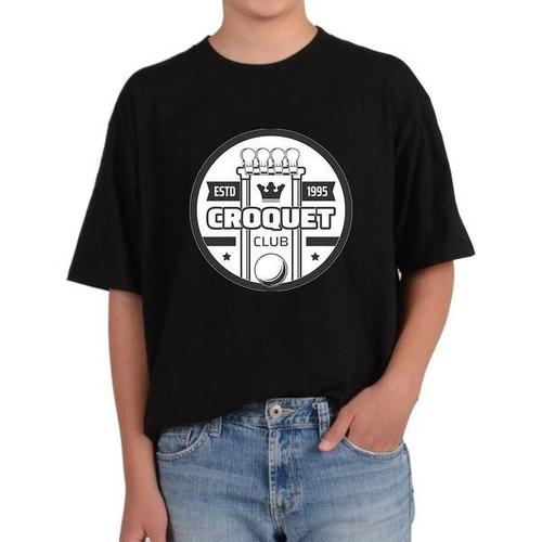 [에이치플러스몰]오버핏반팔티 CROQUET 크로케 레크레에이션 게임 나무망치 전사이즈