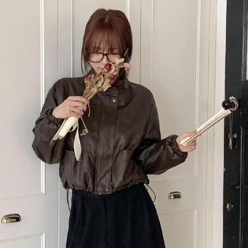 [핑크엘리제]가을 무드 크롭 레더 자켓 바이큰자켓