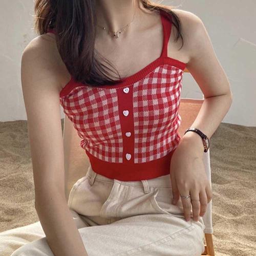 여름 데이트 룩 나들이 체크 크롭 나시 민소매 탑 WFJIWSZ
