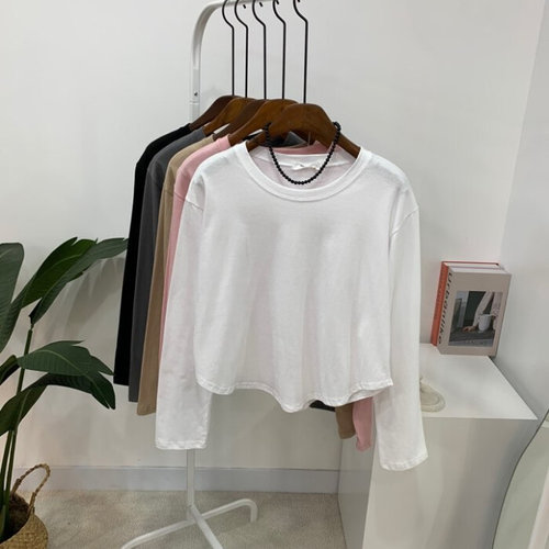 씨샵인더룸 / 1 + 1제품 요마 라운드 밑단 크롭 긴팔 티셔츠 5color