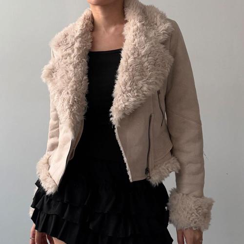 [옷자락] 여자 연말룩 무스탕 퍼트리밍 빅카라 지퍼 크롭 자켓