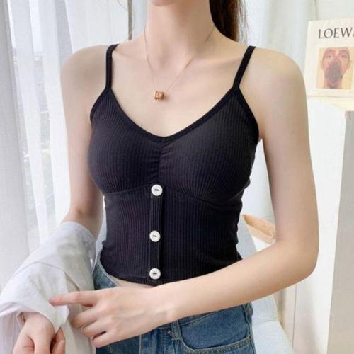[에이치플러스몰]크롭탑나시 여자나시 단추 요가복 스포츠나시 포