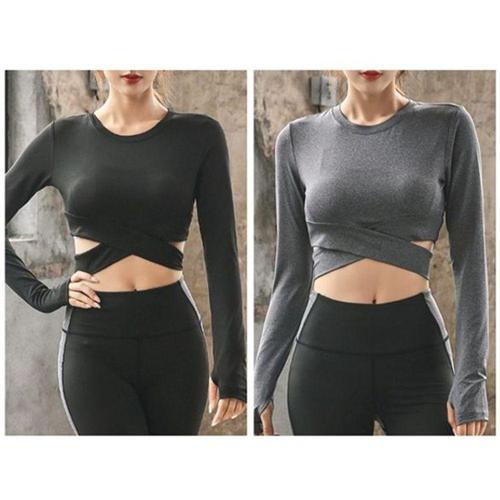[OF7KMR90]여성 헬스복 긴팔 요가복 크롭 배꼽티 의류