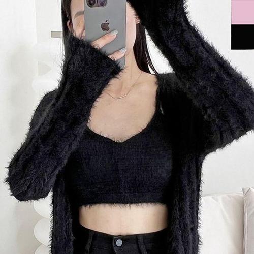 [에이치플러스몰]여자 보송한 크롭탑 가디건 세트 1P 여성 키치룩 코디