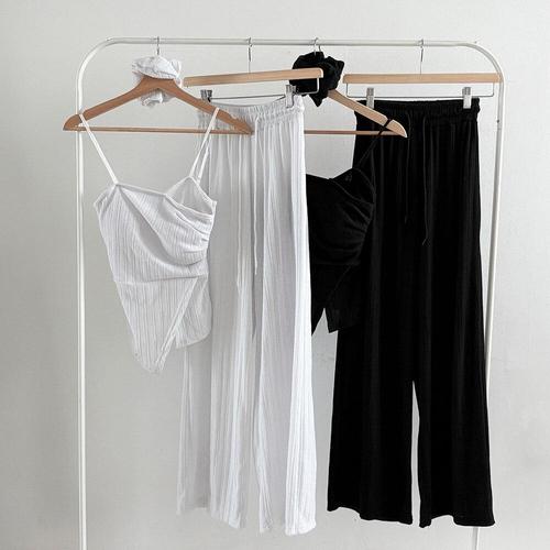 [다잇템_패션]여성 넓은 바지 잔주름 크롭탑 곱창 세트