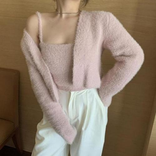 [엄지척]여성 겨울 청순 앙고라 가디건 크롭 나시 투피스 세트_19557856_667501