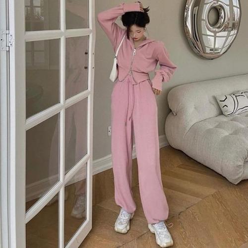 후드 트레이닝 여성 투피스 크롭 와이드 팬츠 셋업 세트 봄 상하 추리닝 여자