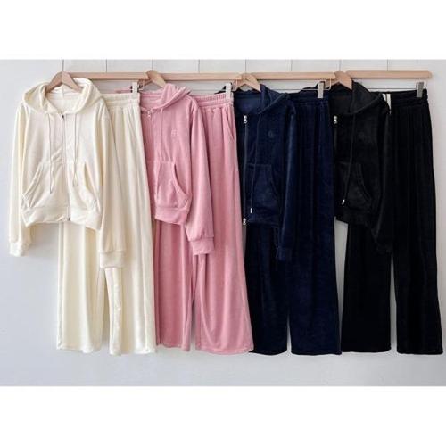 [셀러허브]마타즈 후드크롭 벨벳 와이드세트 집업 SD-241037 와이드 트레이닝세트 코디세트 (S34450594)