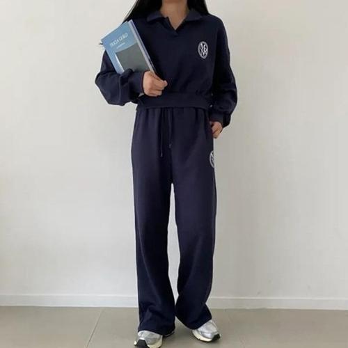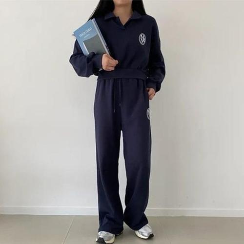 [엄지척]여성 크롭 트레이닝 세트 캐주얼 카라 와이드 츄리닝_20436484_667501