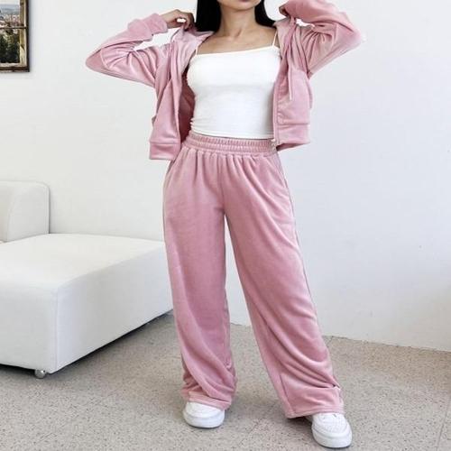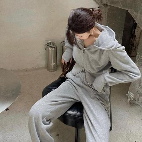 [엄지척]여자 벨벳 크롭 후드 집업 와이드 트레이닝 세트_20434574_667501