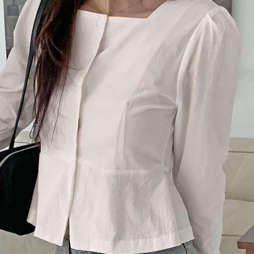 [옷자락] 여성 코튼 스퀘어넥 세미크롭 긴팔 블라우스
