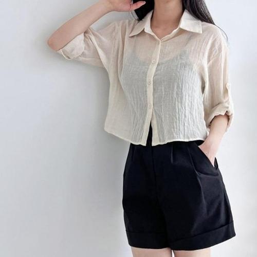 [엄지척]여자 긴팔 세미 루즈핏 블라우스 크롭 셔츠_19652219_667501