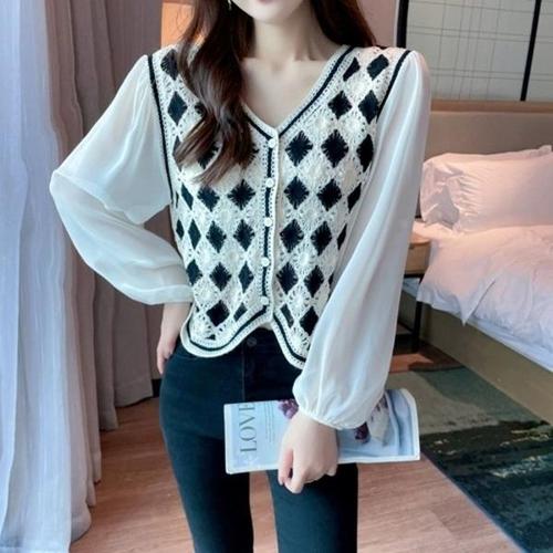 [엄지척]다디아패턴 플라워패턴 뜨게자수 긴팔 크롭 블라우스_19645678_667501