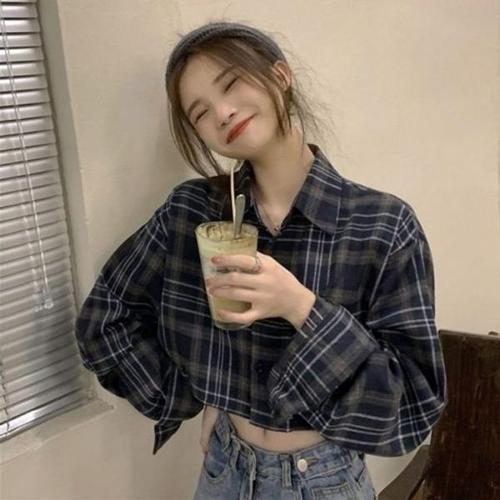 [엄지척]여자옷 체크 크롭긴팔셔츠 메이비굿 셔츠 상의 여성블_19643085_667501