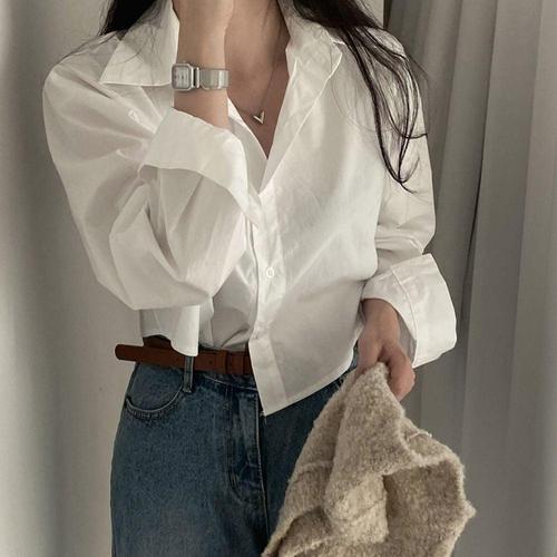 [셀러허브_여성트랜드패션]여성 2컬러 남방 데일리 내추럴무드 크롭 셔츠 긴팔 세련