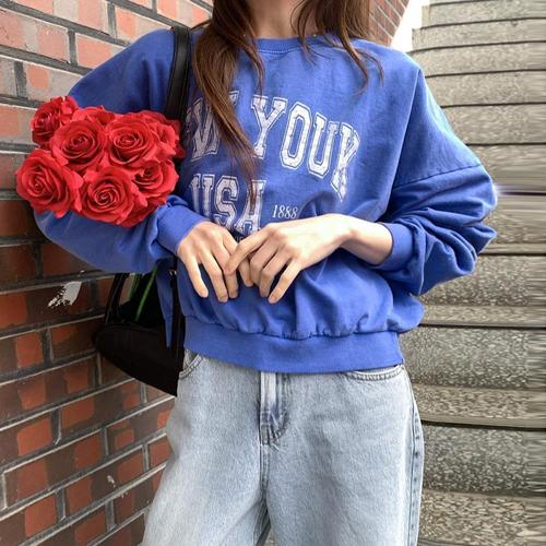 [옷자락]여자 라운드넥 레터링 프린팅 세미크롭 맨투맨