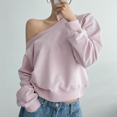 루즈핏 여성 오프숄더 맨투맨 라운드 여성 크롭 맨투맨 데일리 스웨트셔츠 루즈핏