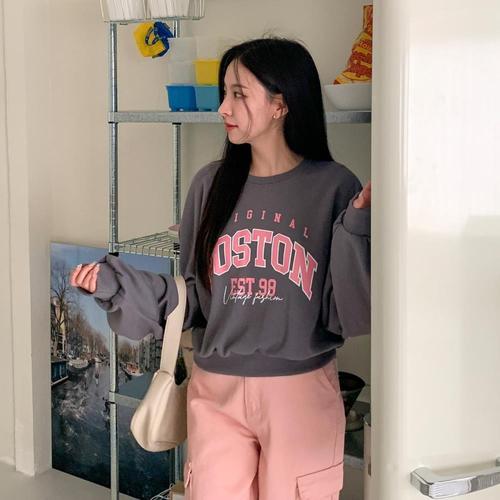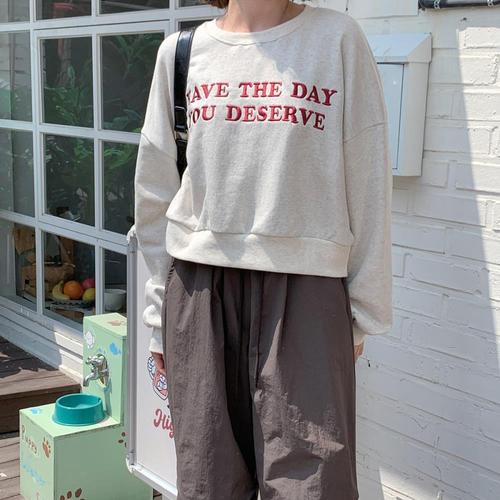 [옷자락]여자 레터링 자수 오버핏 세미크롭 맨투맨