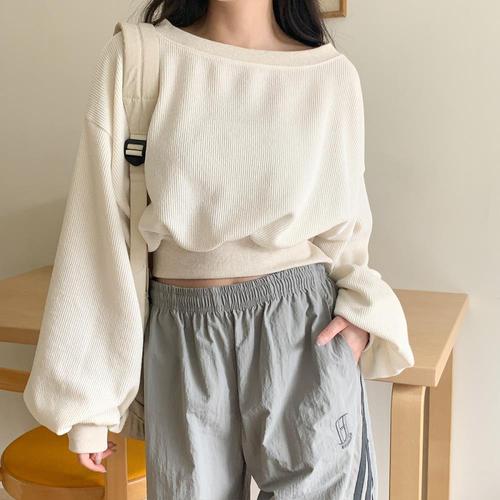 [옷자락]여자 벨벳 코듀로이 크롭 오프숄더 맨투맨