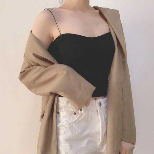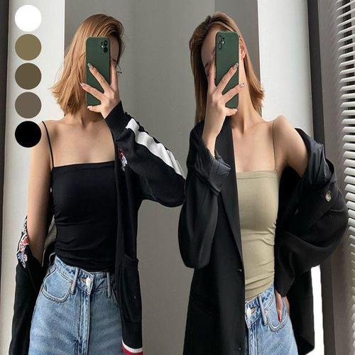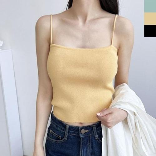 [다잇템]여자 봄 사계절 이너 캡내장 크롭 스판 끈나시