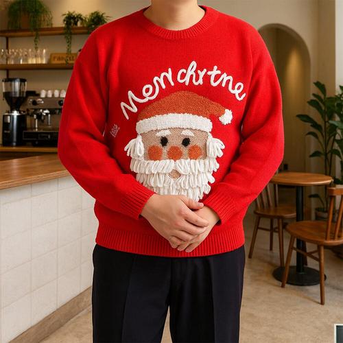 [노멀쉐이크]크리스마스 산타 노르딕 니트 2color 빨간색 초록색 커플 오버핏_NMS