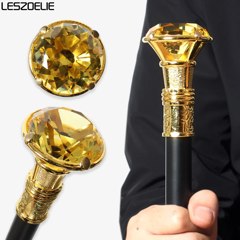 90cm 노란색 크리스탈 다이아몬드 지팡이 금색 손잡이 패셔너블한 지팡이 남녀 공용 장식용 코스프레 지팡이