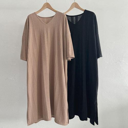 [다잇템]여성 V넥 단가라 반소매 큰사이즈 롱드레스