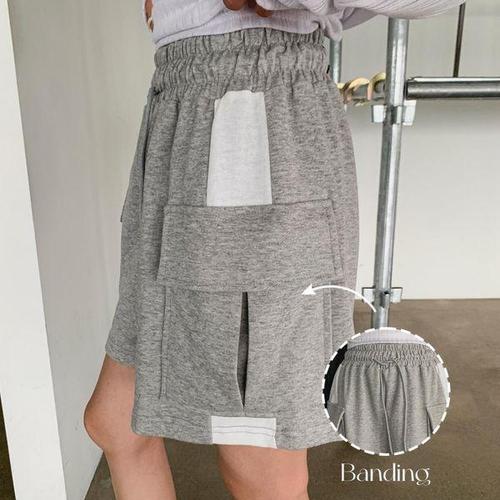 [다잇템]여성 큰주머니 힙무드 밴딩카고 옆면 반바지